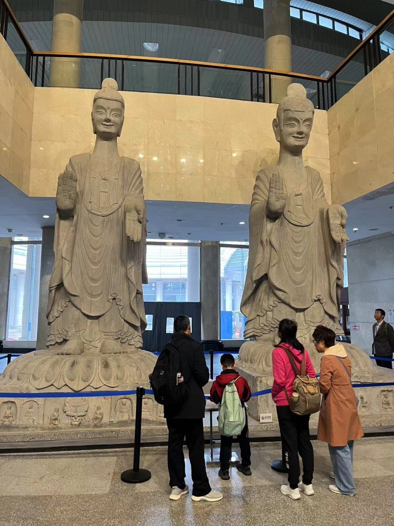 入口的北魏佛像是博物馆的镇馆之宝之一,高 6 米,也是目前室内展出佛像最大的。周末,也有不少的学校组织小学生来参观博物院。